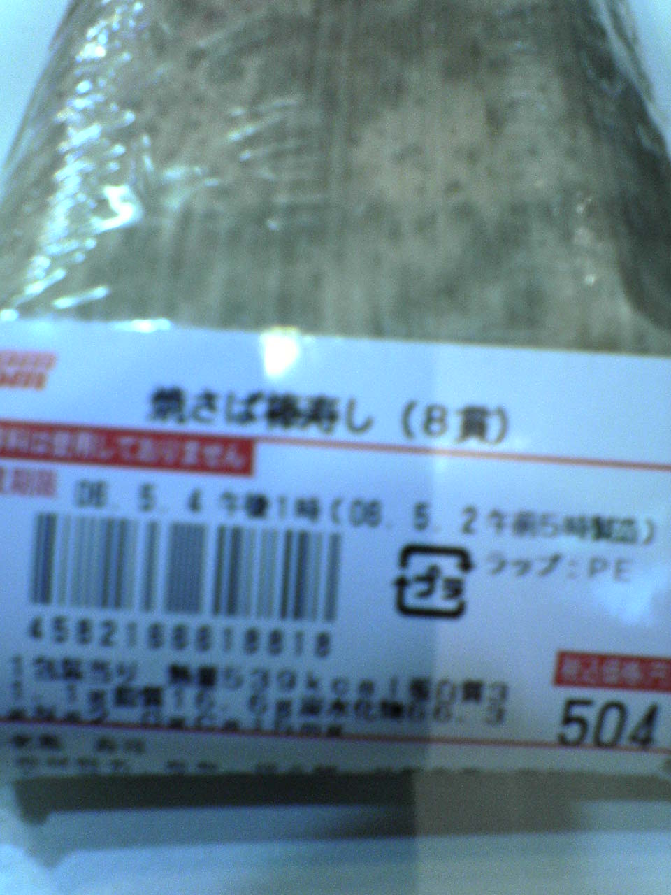 以前は、タンパク質25g(自称)を含む「am.pm」の照り焼きチキンサンド×2個がお気に入りだったのですが、最近発見したのがコノ「焼きサバ寿司」。タンパク質31g含有(自称)。