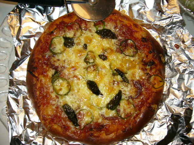 そして、木曜の朝に小規模家庭菜園にその時成っているものを乗せて焼きます。