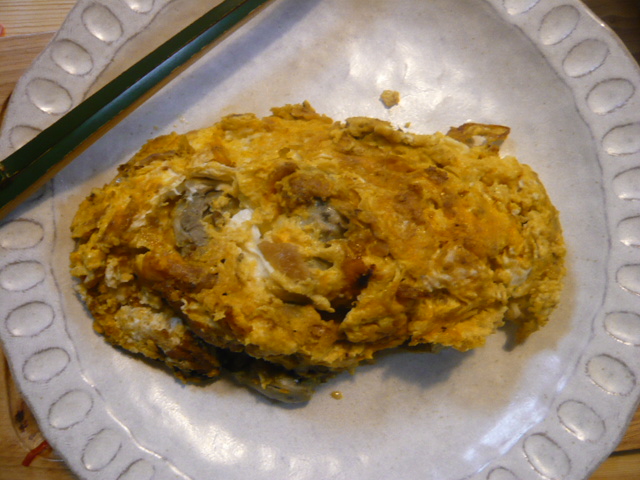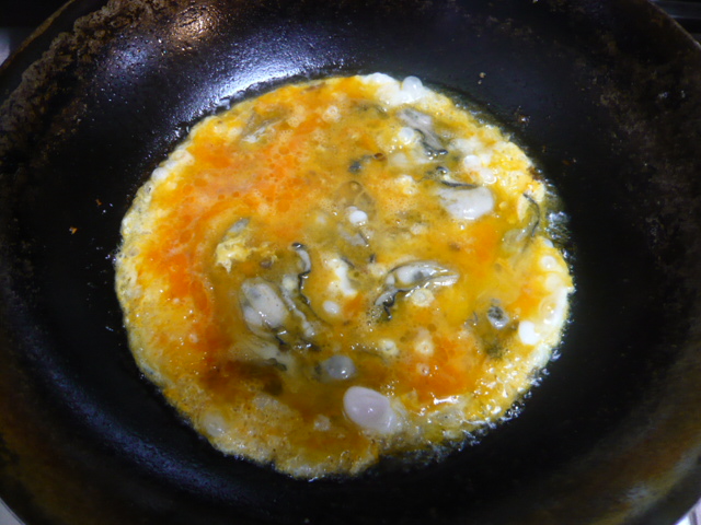 「牡蠣のオムレツ」の完成。