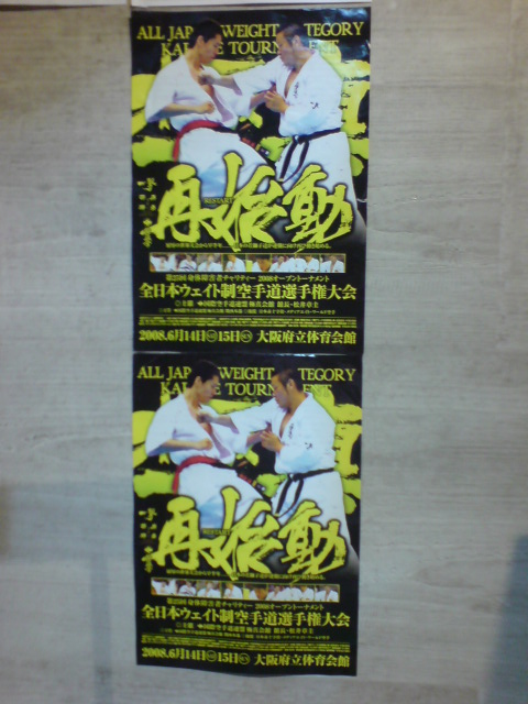 6月14日、15日に大阪府立体育会館で開催される「全日本ウェイト制空手道選手権大会」のポスターを持って来られた。去年、ポスターを持って来て頂いた時から、一年以上経つのか〜。