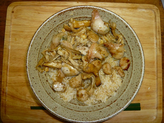 ・・・3できたての熱々を丼ご飯に乗っけたら、いきなり完成〜♪