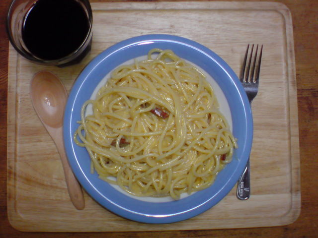 ¥«¥ë¥Ü¥Ê¡¼¥é¤¬¿©¤Ù¤¿¤«¤Ã¤¿¤¬¡¢¥ï¥¤¥Õ¤Ï¼Â²È¤Ø½Ð¤«¤±¤ëÁ°¤Çºî¤Ã¤Æ¤¯¤ì¤Ê¤«¤Ã¤¿¤Î¤Ç¡¢»ÅÊý¤Ê¤¯¼«Ê¬¤Ç¤³¤µ¤¨¤¿¡£Ìë¤Ë·ëº§µÇ°Æü¤Î½Ë¤¤¤â·ó¤Í¤Æ¥¤¥¿¥ê¥¢ÎÁÍý²°¤µ¤ó¤Ø¹Ô¤³¤¦¤È·è¤á¤Æ¤¤¤¿¤¬¡¢¤½¤ì¤Ç¤âº£¤¹¤°¿©¤Ù¤¿¤«¤Ã¤¿¤«¤é¤À¡£