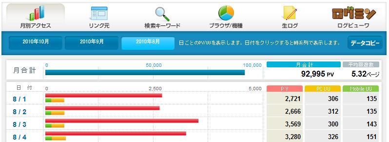 ライブドア提供のアクセス解析。写真は2010年8月度