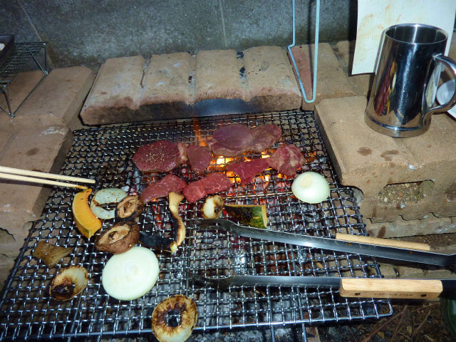 日曜日の肉が余ったので、子供を幼稚園に迎えに行き、「今日のオヤツは焼き肉よ!」と肉を食べた。ちなみに炭の中にはいつもサツマイモと茄子を放り込んでいる。