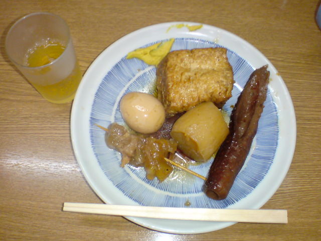 お昼ご飯は、おでんにビール・・・ってどんなシチュエーションやねんって感じだけど、実は岡田らーめんというラーメン屋さんでの光景で、注文したラーメンが来るまでの間に、つなぎでおでんを食べる文化があるのだ。