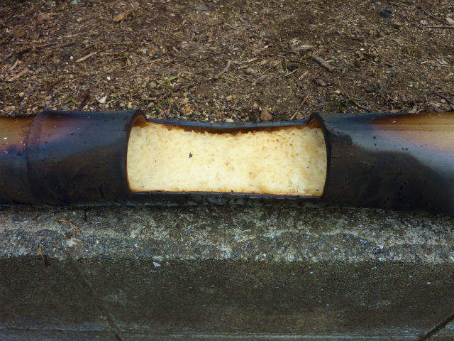 ちなみにこの竹飯盒は、子供とやるときは教育なので手作りでやるが、今回は電動ブレードでチーチングして作った。