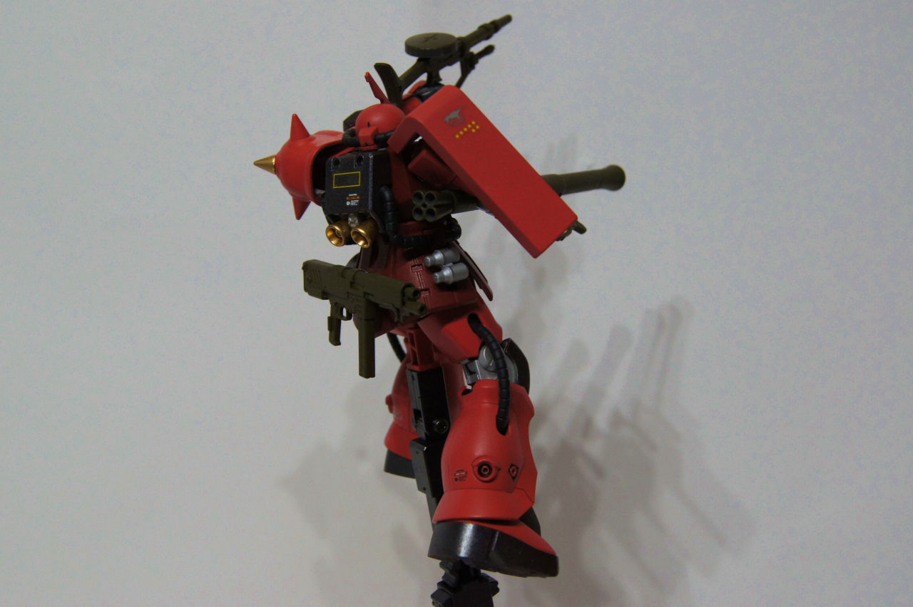 RGザクは、組み立てる工程は一級のエンターテイメント性を持ちますが、ガシガシ動かして遊ぶアクショントイとしては堅牢性に欠け、飾っておくには少し不細工な気がします。