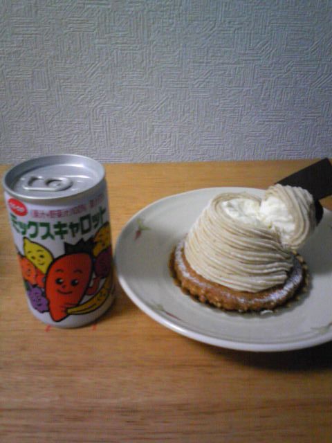 深夜のスイーツ。免罪符として野菜ジュースを一緒に飲みました。