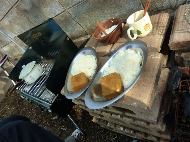 お願いして、2本ほど頂いてきた。竹飯盒飯は旨い。