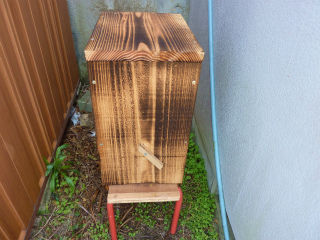 2個目のミツバチの巣箱が届いた。とりあえず、日陰っぽいところに仮設。