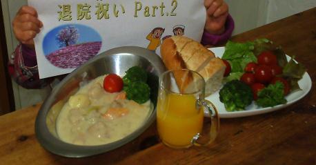 退院祝いのPOPを作って、シチューと共にポラロイドで記念撮影。3月8日(火)