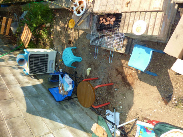 母の日なので、ワイフの家族を招いて焼肉。その前に仮設移動式肉焼き場を固定式建設予定地へ移動させたら、悪戯用のおもちゃ位大きく禍々しいムカデが現れたが、元々、いるだろうとビンとトングを用意していたので難なく捕獲(待て利用法)。