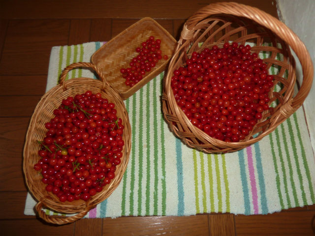 台風で沢山の実を付けたユスラウメの幹が折れてしまった。