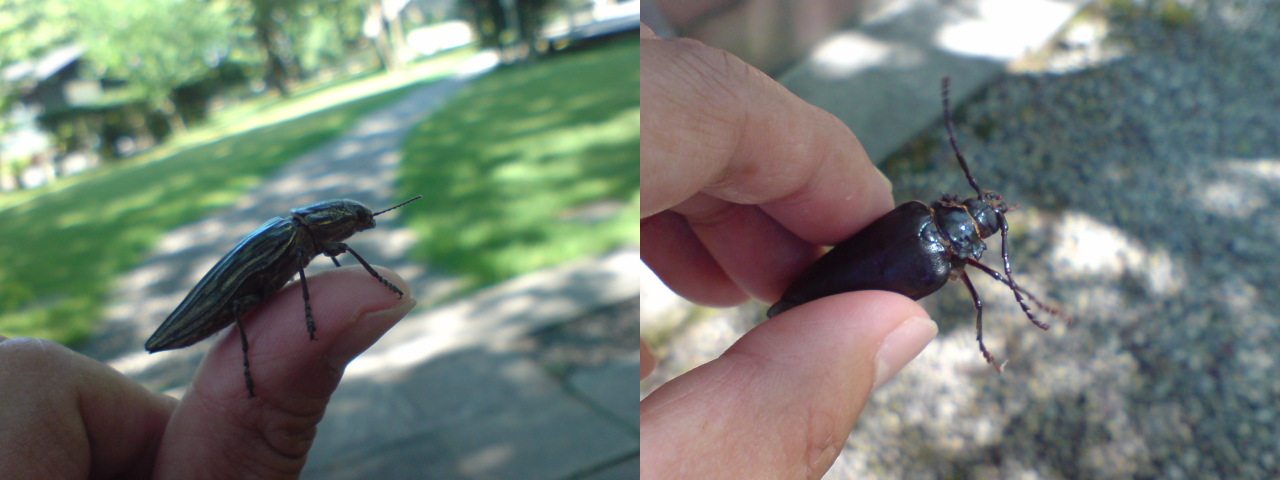 写真は、ウバタマムシとノコギリカミキリ。