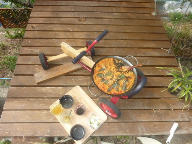 昼御飯に外でパエジャを食べた。