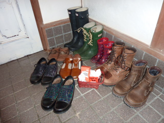 夜10時。ワイフと二人でリビングやキッチンの片付けをしていたら、いつの間にか皮を使用している靴と長靴を磨いていた。