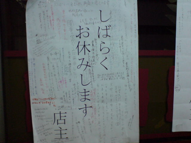 そして、その張り紙には、休業中に訪れたお客からの励ましのメッセージがビッシリと刻まれていた。ただただ、感嘆。そして、ちょっとジェラシー。