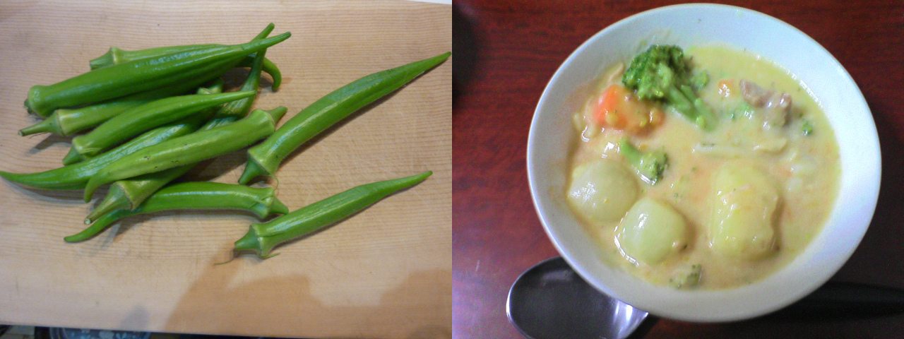 10月末というのに、オクラが良く育つのでオクラのサラダとシチューを持って、実家へ向かった。