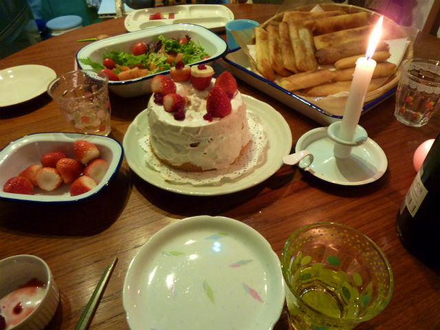 こんなご時世なので、手作りでワイフの誕生会をした。イチゴも採れたが足らなかったので、不足分を方々に買いに行った。