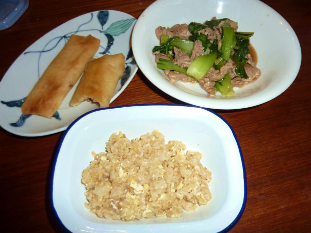 焼き飯、春巻き、チンゲンサイと中華っぽいので写真に撮った。