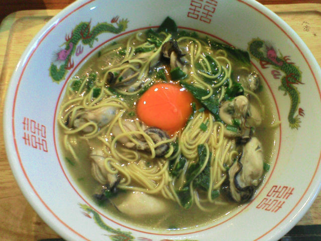 牡蠣ラーメンが本日の昼飯。やはり不細工。