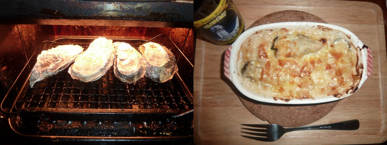 自分のグラタンは殻付き牡蠣を加熱して、その汁と身を混ぜ込んだ豪華仕様。
