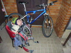 地元の友人達も実家だろうから、赤子マウント専用リュックで赤子を負ぶい、件のMTBで再会の旅に出た。