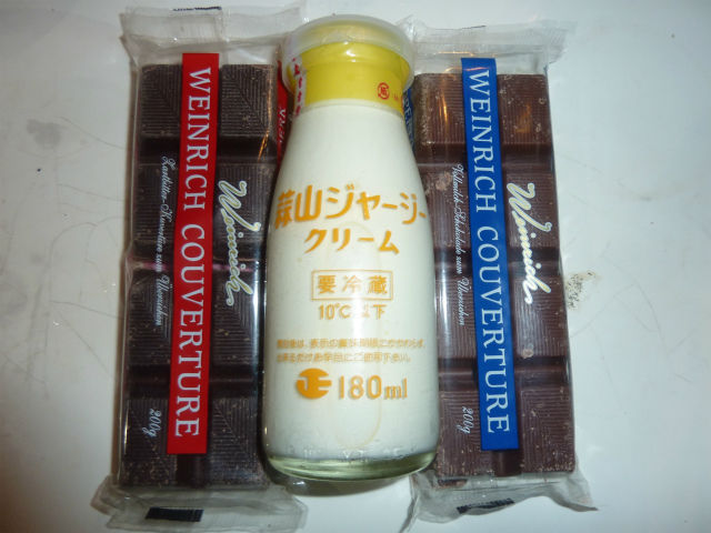 24個に対し、チョコ100g、生クリーム50g、ラム酒大さじ2杯程度。