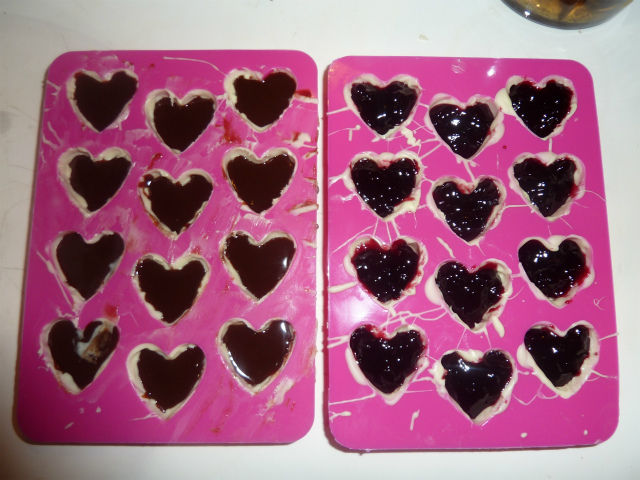 ちなみにマスターは24個中、半分をガナッシュ、もう半分には自家製ブラックベリーソースを流し込んでみた。