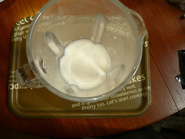 ...1豆乳200〜300mlをミキサーへ投入(シャレではない)。
