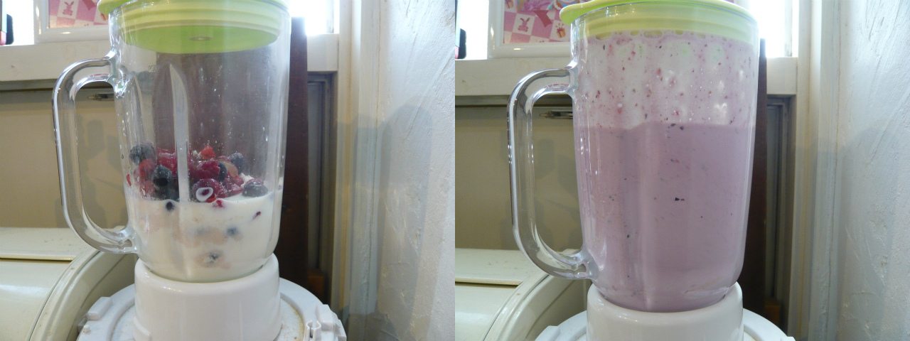 冷凍庫のミックスベリーを一つかみ放り入れる。