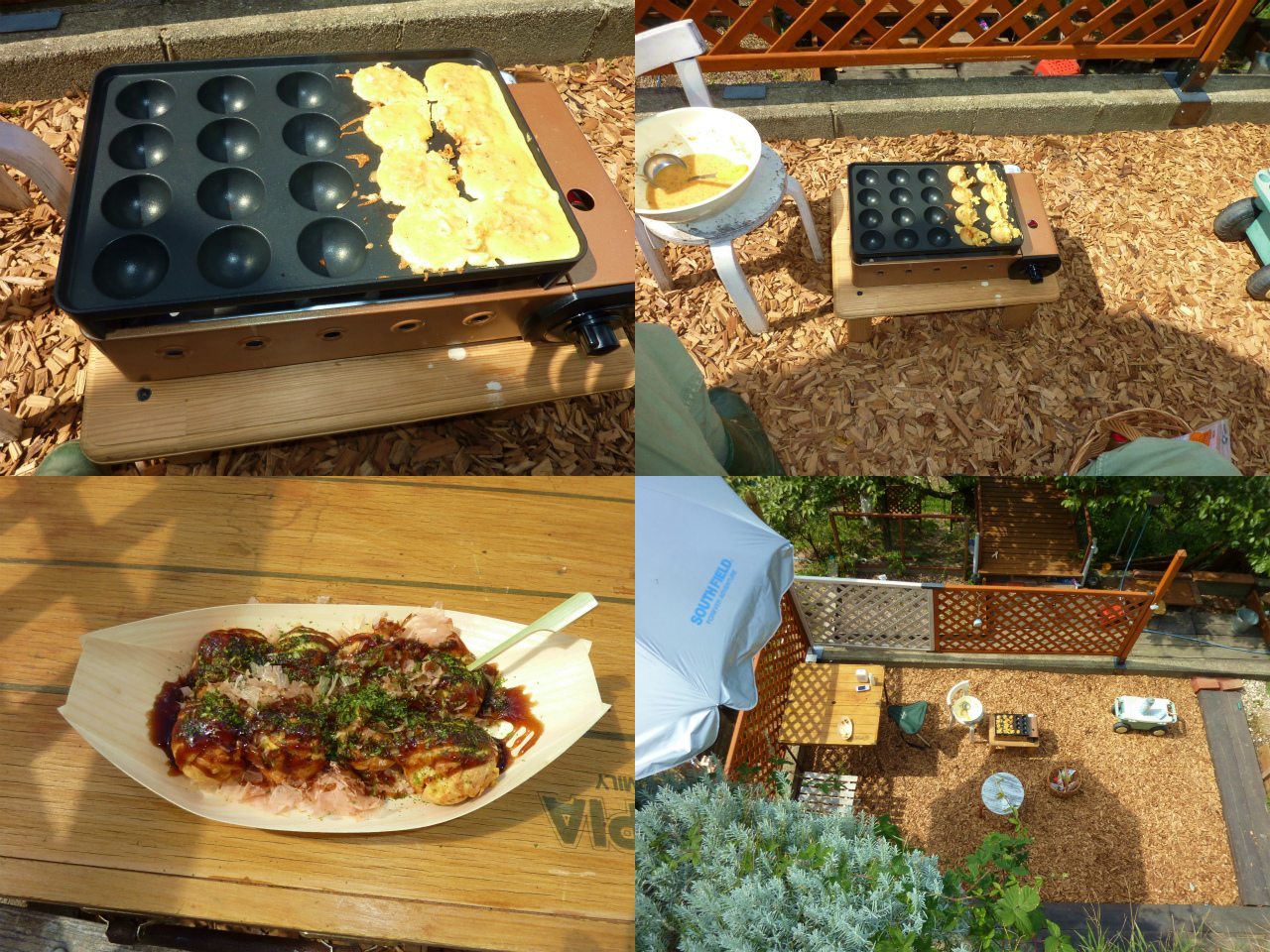 帰宅すると昼になっていた。何か食べさせないといけないので、タコ焼きを焼いた。