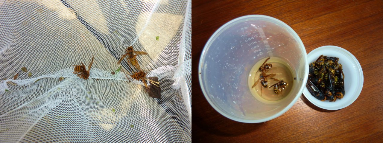 網で捕獲したスズメバチは、ジン漬けに。