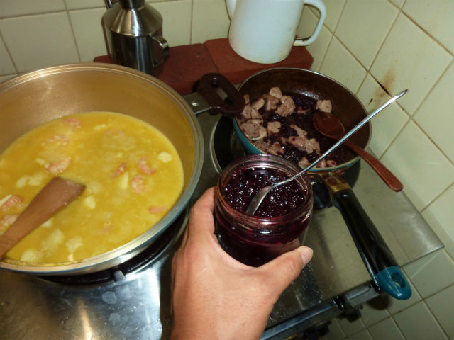 今日は朝から晩まで子供達の面倒をみないといけなかったが、手抜きするのもなんなので、凍らせておいたベシャメルソースを解凍してシーフードカレーに変身させ、ブラックベリージャムを作る際に発生する搾りカスのストックでスペアリブ風をこさえてみた。