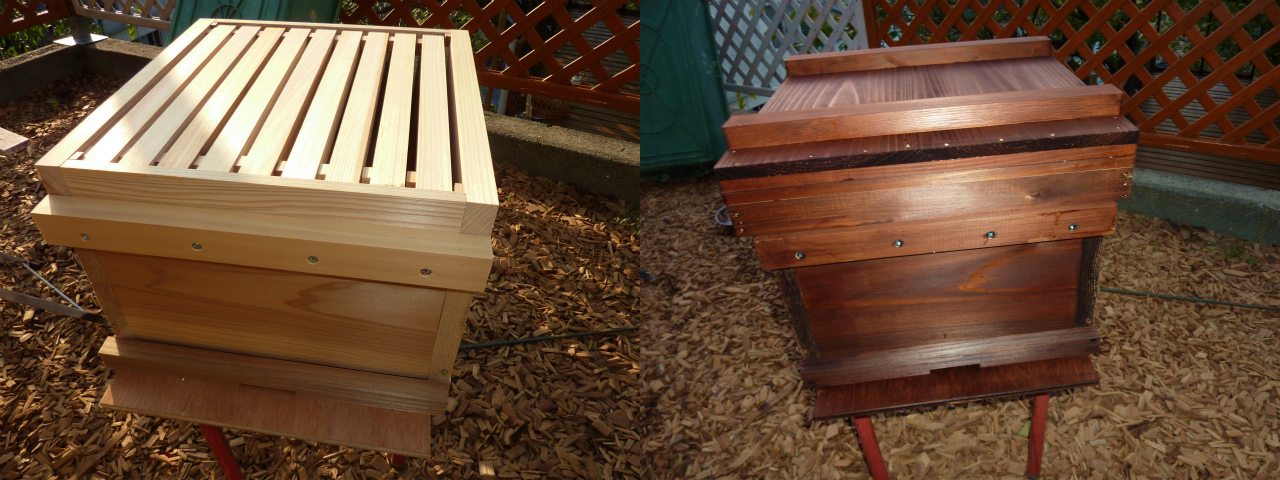 3時間目は、最近仕入れたミツバチの巣箱を防腐するために、上柿渋で着色&コーティング。他の古くなった巣箱もついでにコーティングした。最低でも、2度塗りするので、時間がかかる。