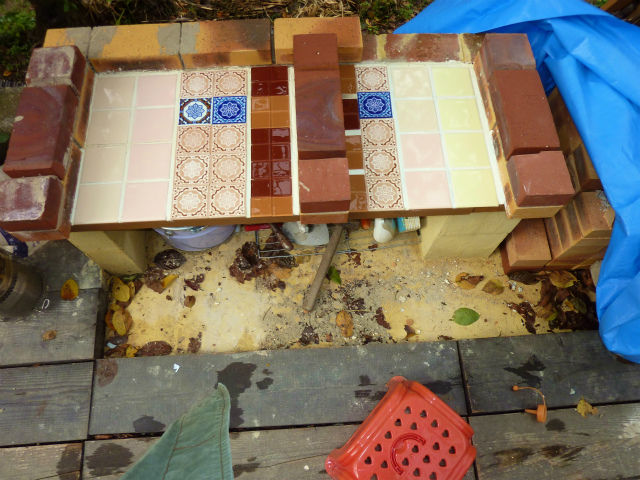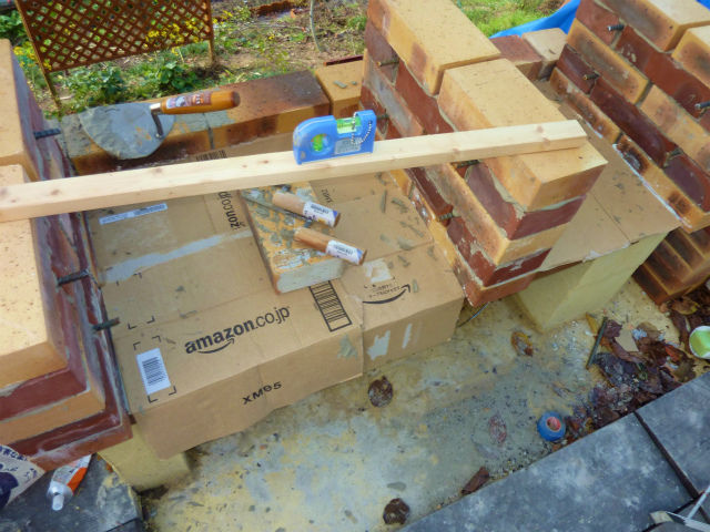 夕方、野外キッチンAパートのモックアップを作った。セメントで固める前の仮組と言う奴。