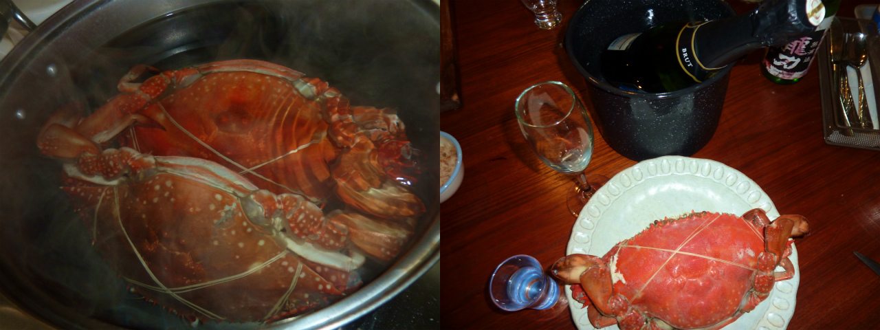 夜。今年一年頑張ったご褒美に、ワタリガニのメスを頂く。夏はオス、冬はメスが旨い。生タラバも捨てがたいが、データがないので。