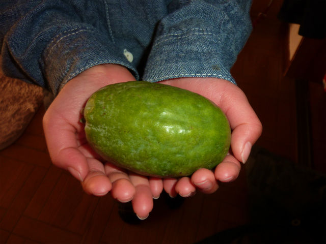 これはフェイジョアのアポロ。マンモスという品種くらいデカイので、受粉した品種の形質が強く出るのだろうか。