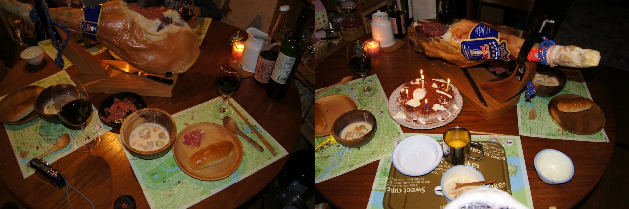 クリスマスイブ。去年は特に何もしてあげなかったので、今年は子供と一緒にホワイトシチューをこさえてみた。ベシャメルソースを子供に任せたために、思った通りの味にならなかったが、手作りケーキが意外にも旨かった(失礼)。