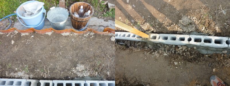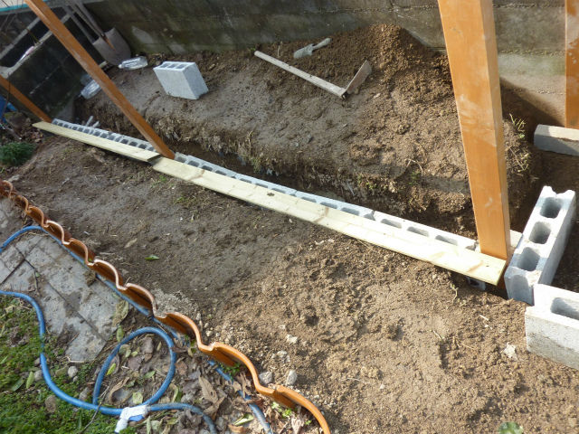 その為の基礎工事。90×370cmの外周をブロック1個分の溝を掘る。