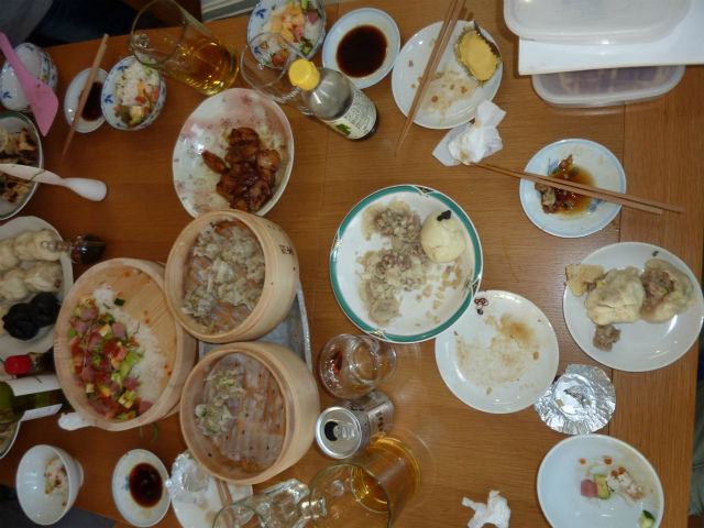 友人ワイフのちらし寿司も加わり、非常に豪勢な手作り飲茶パーティとなった。もちろん、どれもお店よりも美味しかった。10年以上続いているプレゼント交換後、お開きになったが、その後も居残って友人と呑んでいたら、いつの間にか積雪しており、外に出るとアチコチでサイレンの音が。