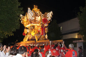 夜。地域の祭り1日目。近所にハナと呼ばれる天狗と御輿がやってくる。