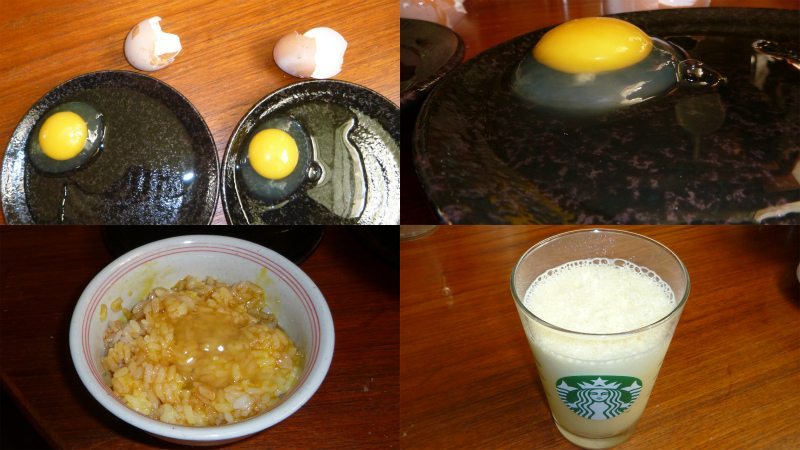 市販品も自然を標榜する比較的お高い卵であるが、産みたては卵黄も卵白も弾力を産む盛り上がりが異なる。
