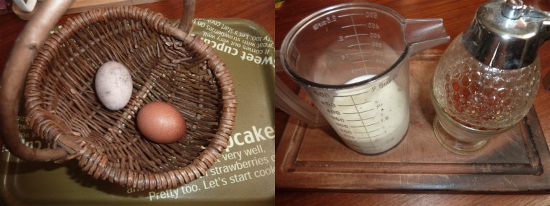 今日の卵は、生クリームと自家採集日本蜂蜜、バニラシード、グラニュー糖と混ぜ合わされて、オーブンへ。