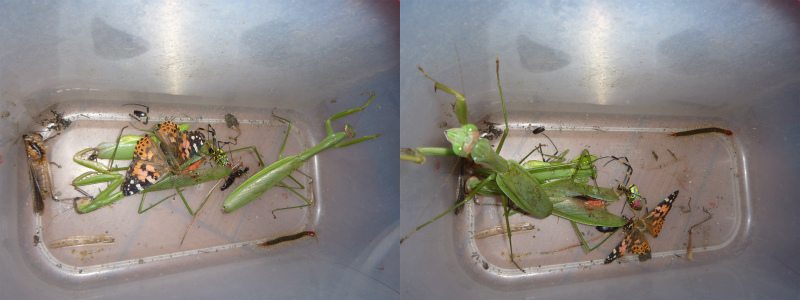 午前中、息子はんと散歩&公園トレを兼ねた昆虫採集。道中出会った小学生が手伝ってくれたのでカマキリがまずまず。そして、この日は、偶然にもナナフシを発見できたのだが、同じカゴに入れておくと直ぐにカマキリが食べようとするので、網に入れていたら忘れてしまっていて、気がついて時にはいなくなっていた。