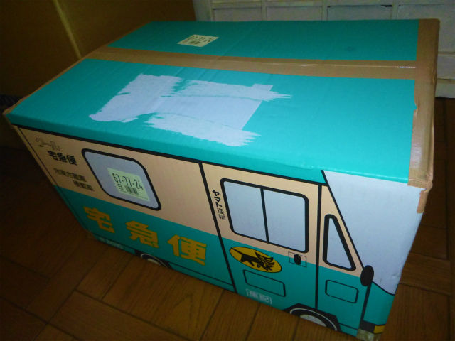 チェックアウト前日に配送用ダンボールを購入していたが入りきらず、デカイダンボールになってしまった。