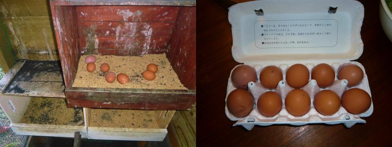 いつもは殻を果樹の根元に埋めるが、今回、鶏に与えてみると、あっと言う間に跡形もなく食べ尽くされていた。