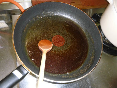 今日は母らを招いて、お食い初め。料理が少なかったらいけないと言われたので、念の為にローストビーフを作り、その際に発生した肉汁でソースを作っているの図。