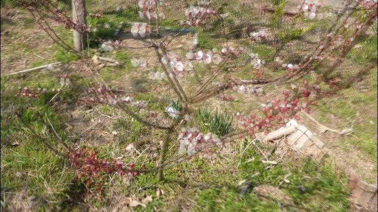 杏の花の3D写真。こんなお馬鹿な写真が撮れるのに、何で3Dカメラは売れなかったのだろうか?