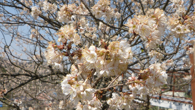 チェリーが満開3日目といったところ。羽音うるさくミツバチが飛び回っている。